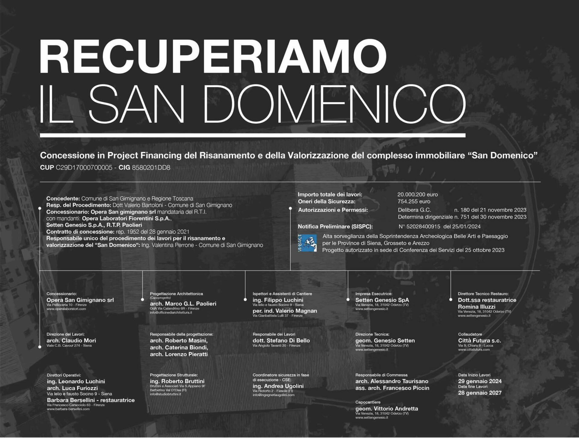 E’ uno dei casi più importanti di federalismo demaniale che ha consentito il trasferimento del bene alla Regione Toscana ed al Comune di San Gimignano che si sono fatti promotori di un lungo percorso di rigenerazione urbana. La sfida è stata accolta da OPERA LABORATORI FIORENTINI in associazione temporanea con la SETTEN GENESIO Spa. All’interno di un team di professionisti coordinati dall’Arch. Marco Paolieri (ArDeMo), lo studio BIONDI MASINI Architettura si è occupato di redigere il Piano di Recupero, il progetto definitivo ed esecutivo, oltre all’assistenza della Direzione Lavori nell’elaborazione dei disegni costruttivi e varianti in corso d’opera.
